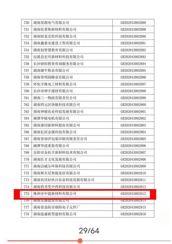 株洲市中建新材料通過高新技術(shù)企業(yè)認(rèn)定的公告
